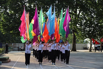 在激昂的《運動員進行曲》中,國旗、廠旗、會徽、標語、彩旗方隊及十六個代表隊邁著矯健的步伐走過主席臺。